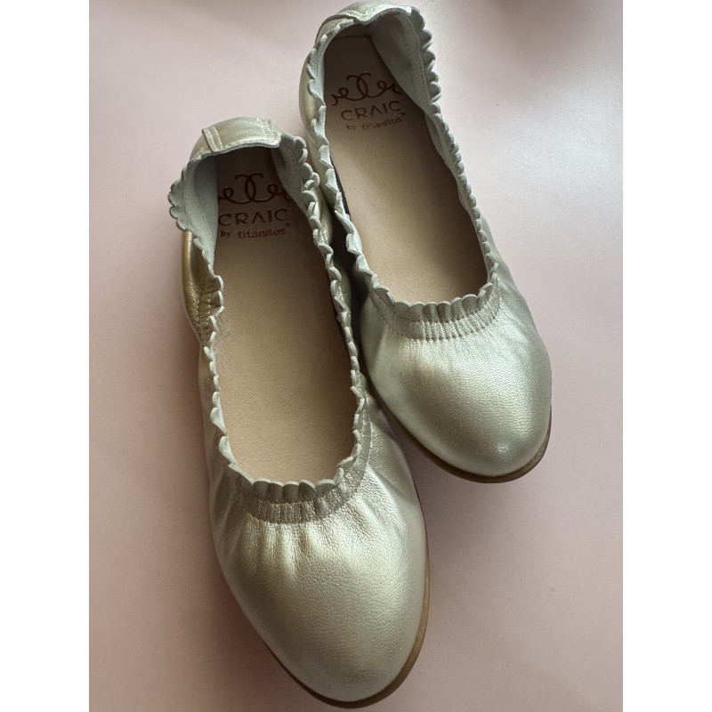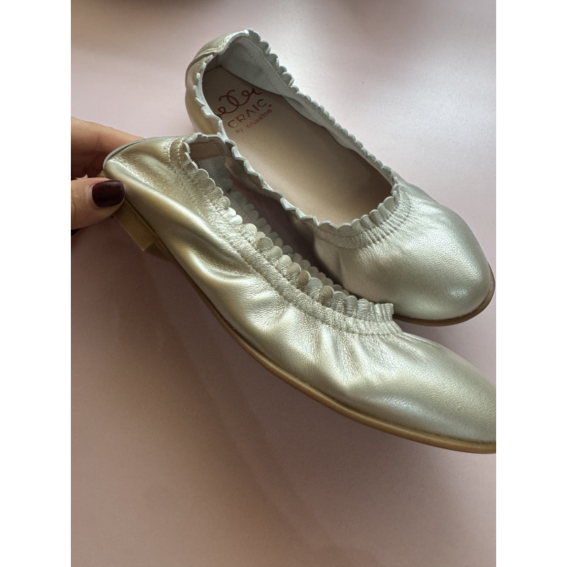 bailarinas color plata de la firma titanitos,piel y fabricacion española.